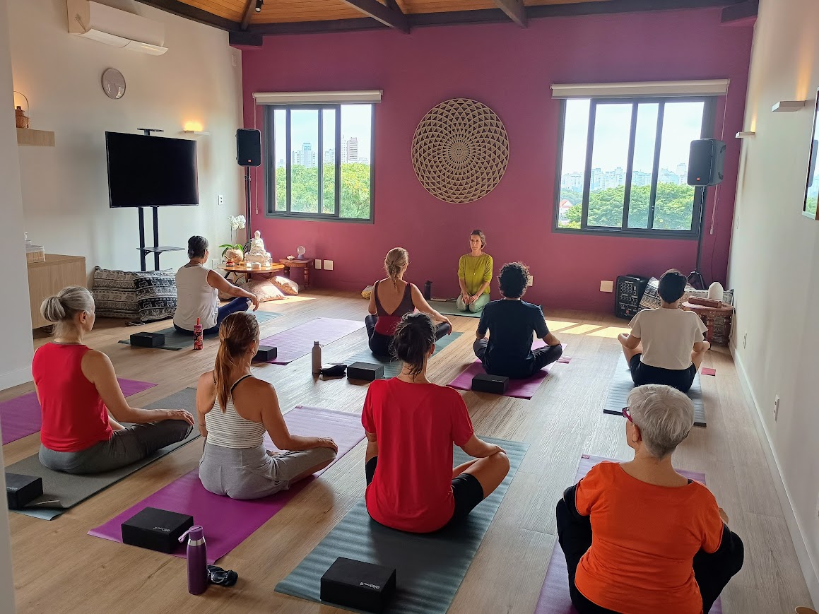 Práticas presenciais para todos os níveis, integrando corpo, mente e espírito em um ambiente acolhedor no bairro do Sumaré.